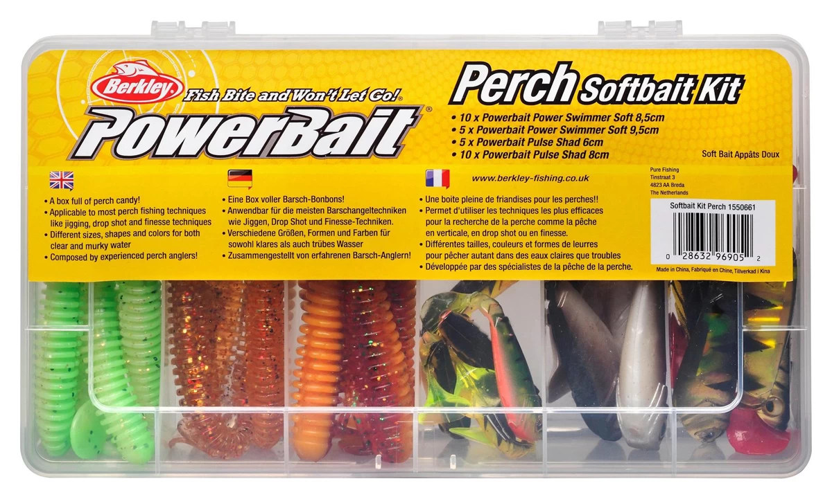 The Berkley Powerbait Perch Kit is the perfect all-around kit for perch with a wide selection of sizes and colours softbaits. All shads feature PowerBait scent to maximize catches and give you an edge. Can be used anywhere, an asset in any tackle box!