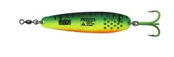 The Madcat A-Static Turbine Spoon is a catfish spoon with holes in it for added turbulence. The slim shape makes it ideal for fast flowing water. Comes with an incredibly strong and sharp treble hook in size: 3/0. Equipped with A-Static, which means rubber coated, to minimize the electric field that deters catfish.