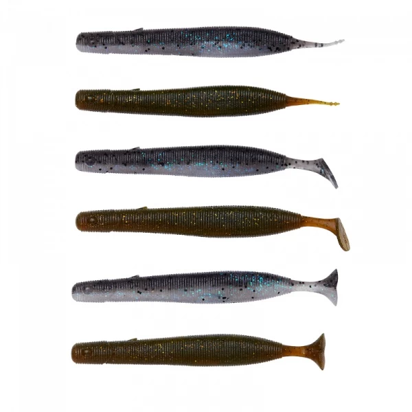 A series of slim shads that allow you to fish where no one else can! Thanks to the aerodynamic design, these shads can be cast very far. Furthermore, the shads feature different tail types so you can respond well to any situation. The shads feature a slot in their body in which a rattle can be placed. In addition, the shads have a weight slot in the tail so you can cast even further when needed!