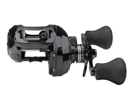 This Ox baitcaster is a powerful reel, suitable for fishing with medium and large-sized lures. Thanks to its gear ratio it is very suitable for fishing a large surface in a short period of time. It’s also very good for trolling as the internal ratchet on the brake allows you to react immediately to a take. With its impressive 12kg shear force it will retrieve the biggest fish to the shore. The magnetic brake can be adjusted very accurately to minimize the risk of casting a tangled line. This reel is a left-handed model, which means that you hold the rod in your right hand and turn the crank with your left hand.